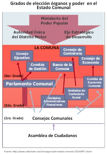 Este modelo se fundamenta en la Constitución de 1999, que establece la democracia participativa y protagónica como eje central del sistema político venezolano, y en leyes como la Ley Orgánica de Comunas de 2010, que define a las comunas como la célula fundamental del Estado comunal.