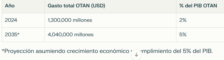 Esto nos lleva al kabuki del cinco por ciento. Para que cada miembro de la OTAN gaste el cinco por ciento en ofensiva , con una deuda combinada que ya supera el 80 por ciento del PIB, necesitarían casi triplicar los 325 mil millones de euros (aproximadamente 381.2 mil millones de dólares) que gastaron en armamento en 2024, alcanzando así casi un billón de euros.