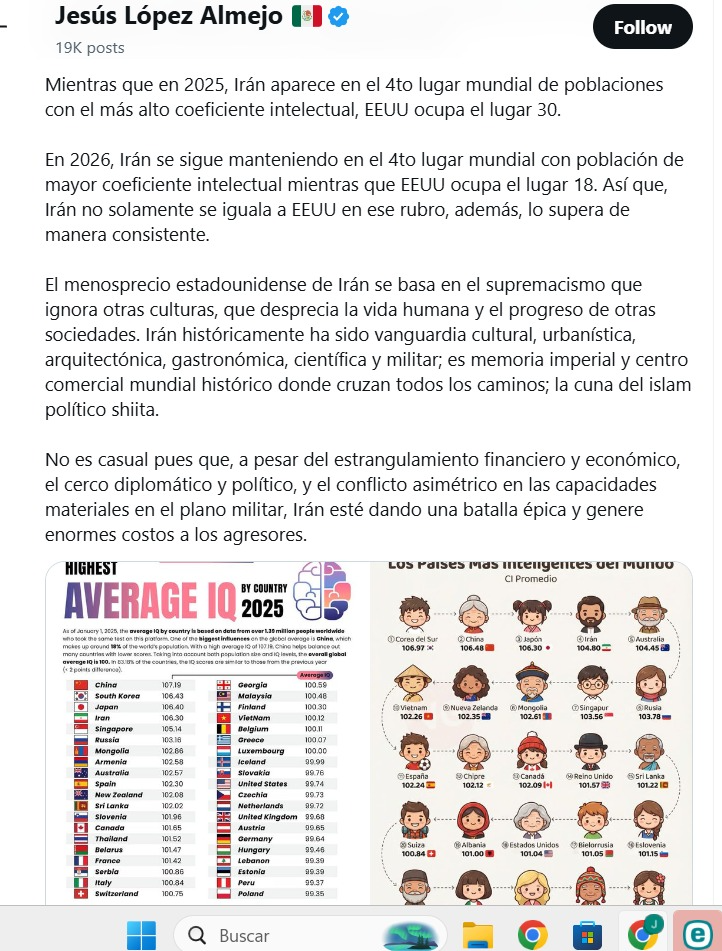 Estados Unidos no puede destruir esto porque ni siquiera lo comprende. Para Washington, la guerra es una cuestión tecnológica superior, de presupuesto militar, de aliados tácticos. No comprenden que hay fuerzas que operan más allá de la física de la destrucción, en el territorio del espíritu colectivo, de la memoria ancestral, de la identidad profunda. Irán tiene eso. Estados Unidos no.