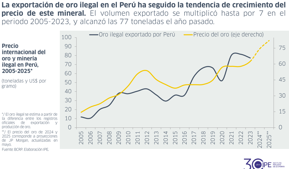 A precios actuales (~US$ 4,150 por onza), la minería informal mueve más de US$ 8 mil millones anuales, equivalente al 15% de las exportaciones totales del país.