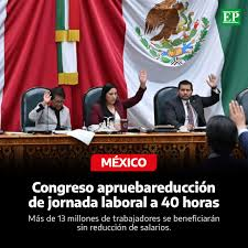 La Cámara de Diputados mexicana aprobó por unanimidad la reforma que establece: Reducción de la jornada de 48 a 40 horas. Un día de descanso obligatorio con salario íntegro. Pago doble y triple en horas extras. Sin reducción de sueldos ni prestaciones .