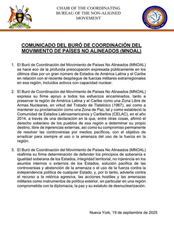 El Buró de Coordinación del MNOAL reitera su compromiso con los principios de soberanía, igualdad, integridad territorial y no injerencia.
