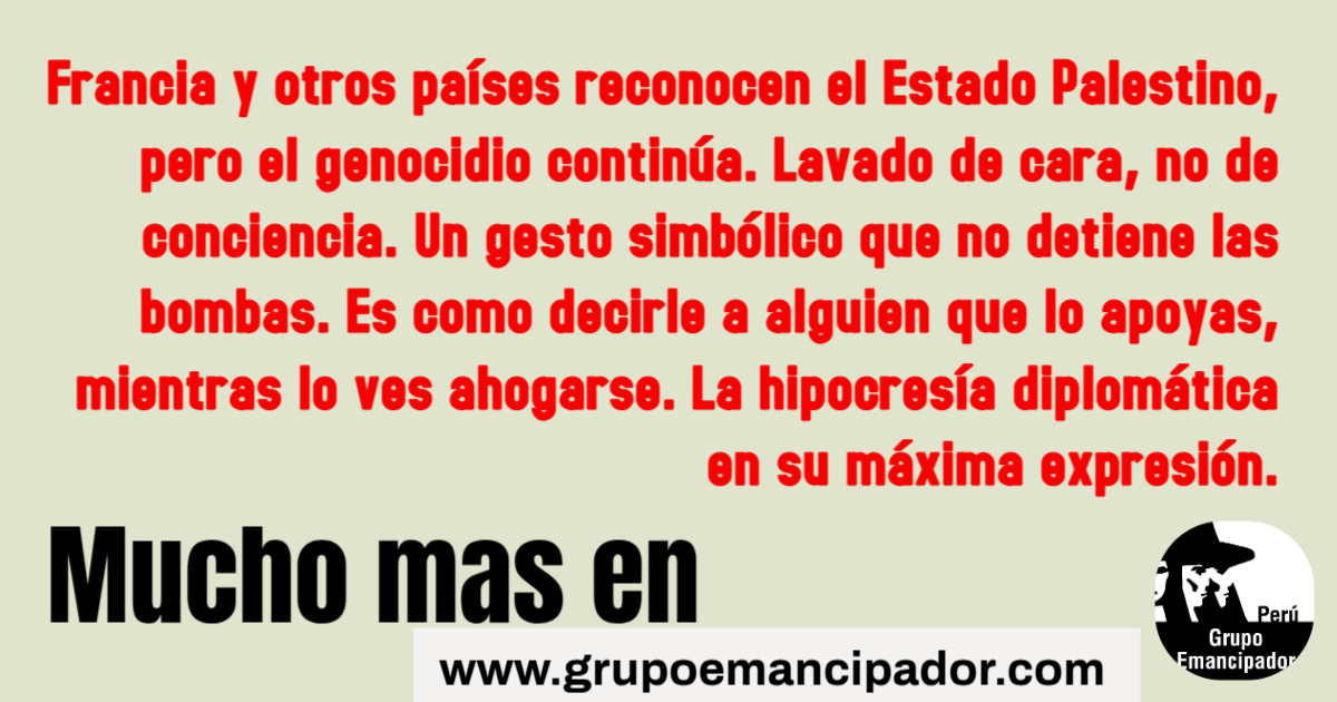 Francia y otros países europeos, con lágrimas en los ojos y discursos emotivos, reconocen al Estado Palestino… mientras siguen vendiendo armas a quienes lo bombardean. ¿Hipocresía? No, es “diplomacia creativa”. Lavado de cara, no de conciencia. El genocidio sigue, pero al menos ahora tienen un certificado de buena intención.
